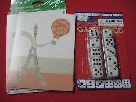 I sat aside a few of this pack of cards I got for Christmas to put in a hot air balloon themed box I'm working on and found these dice I'd bought for something but didn't need. I'll probably print off Yahtzee scores sheets to include with them, and of course they can play any dice game they know with them, or make one up. The neat thing about both these items is that I have stories to tell about the theme and game and my extended family, so it'll make the notes I include in those boxes more personal and give a better connection to the recipient.